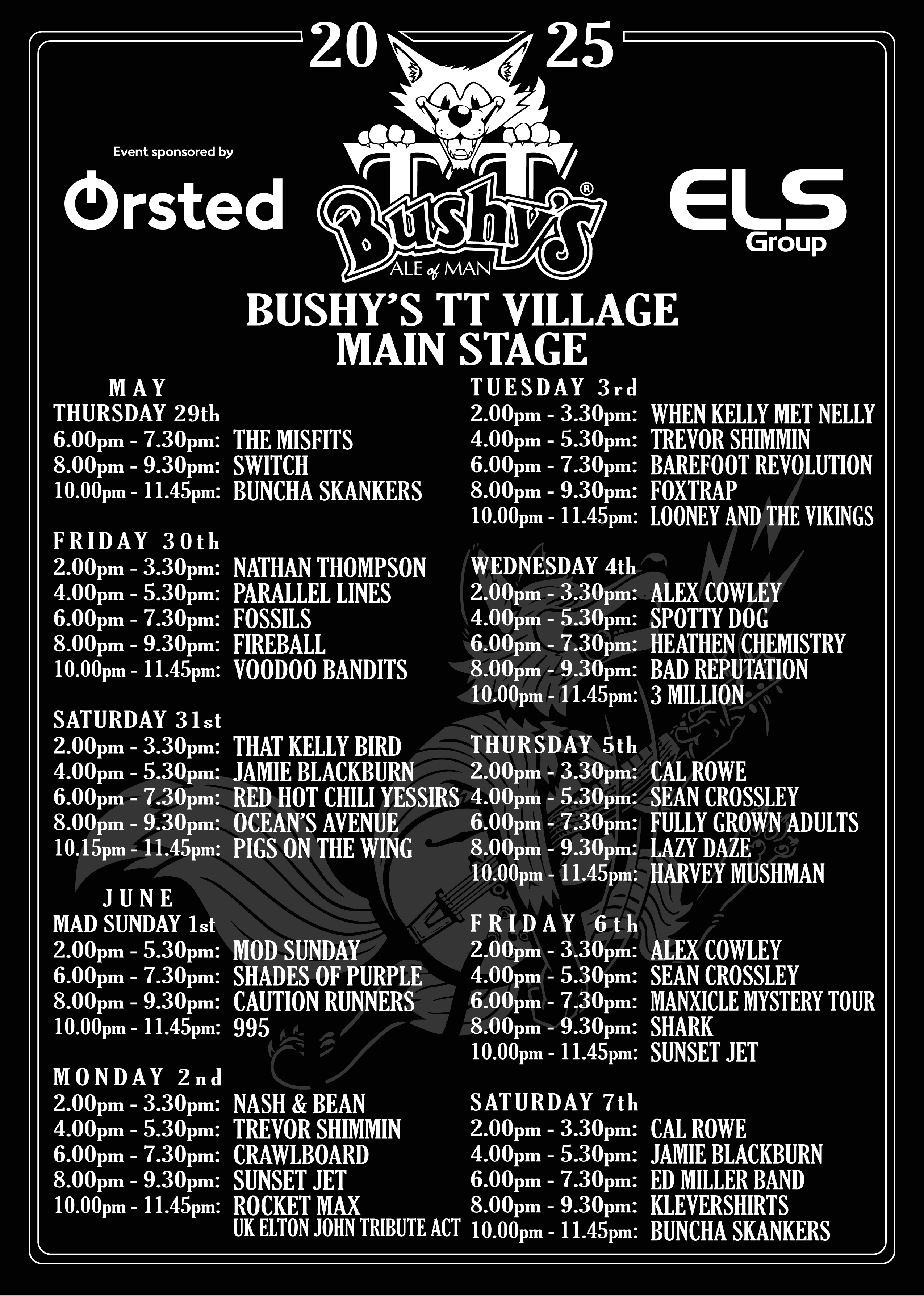 The Village is brought to you by us, Key Bar Events. We have been bringing you the TT vibes for years! The Village is our main event of the year, but stay tuned to our socials for any pop ups throughout the year.